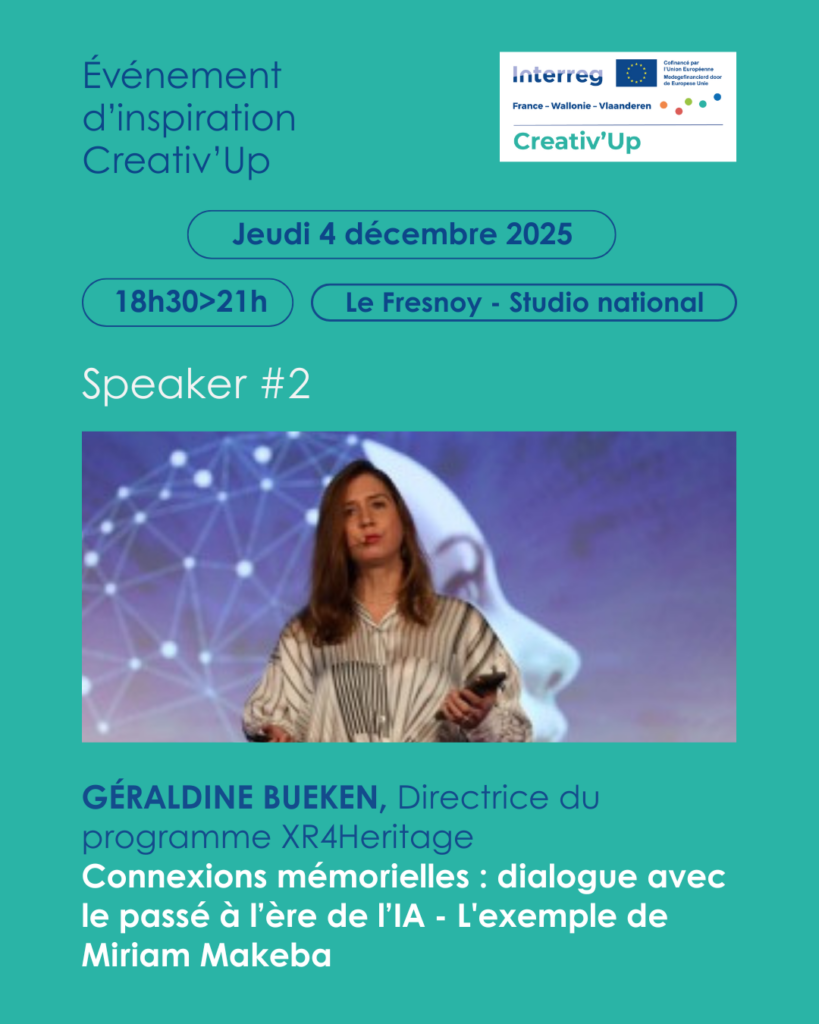 ➡️ Géraldine Bueken, Directrice du programme XR4Heritage – “Connexions mémorielles : dialogue avec le passé à l’ère de l’IA – L’exemple de Miriam Makeba”