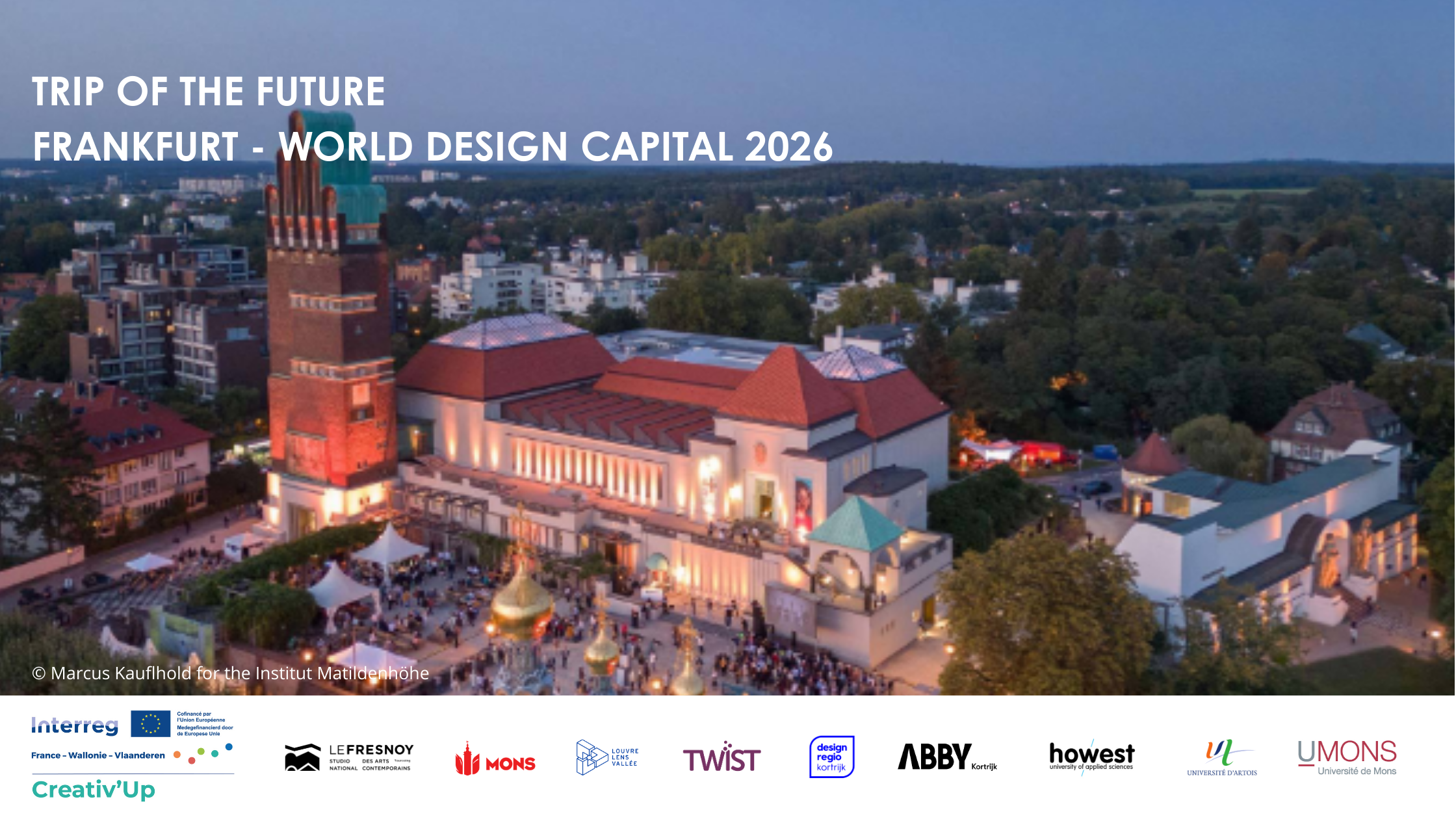 Du 9 au 11 juin, les partenaires de Creativ’Up se rendent à Francfort, World Design Capital (WDC) pour 2026. Une occasion unique pour les professionnel.le.s du secteur culturel et créatif de s’inspirer de projets innovants, de se faire connaître au sein de l’écosystème et de nouer de nouvelles relations avec des professionnel..le.s partageant les mêmes idées en Flandre, en Wallonie et dans le nord de la France, ainsi qu’avec des partenaires créatifs et culturels et des entreprises de l’écosystème de Francfort.